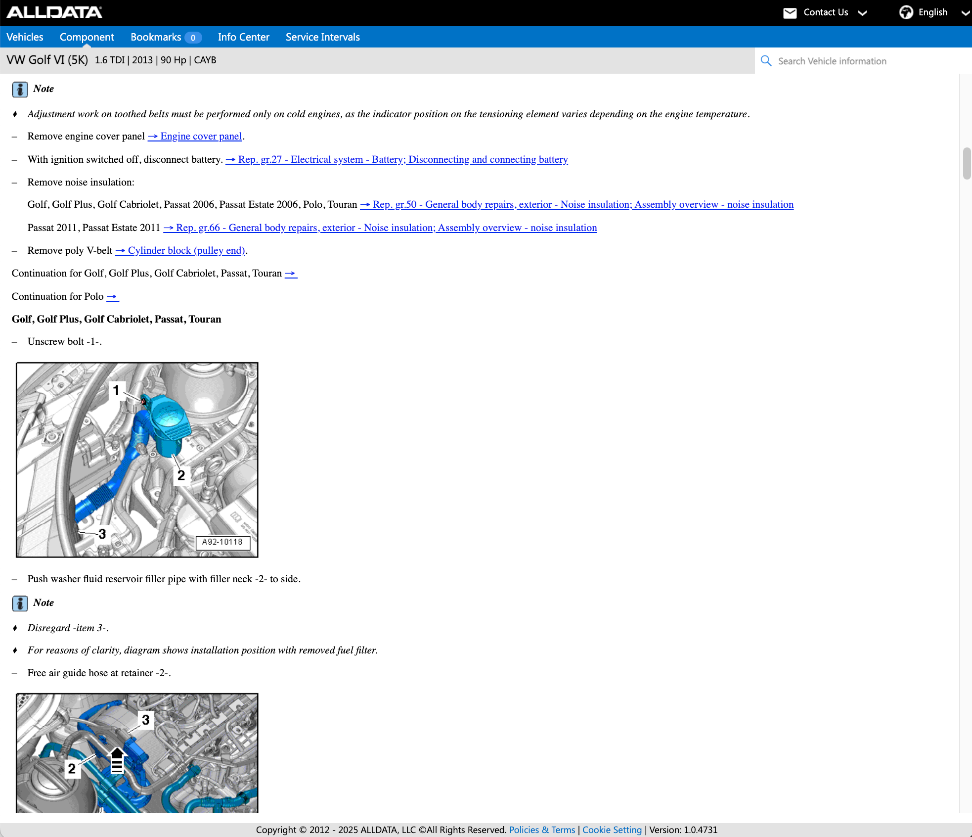 ALLDATA Repair provides unedited OEM procedures, including required tools, safety precautions, step-by-step instructions, and component removal and refit guidance. Every procedure is delivered exactly as produced by the manufacturer, ensuring technicians follow true OEM standards.